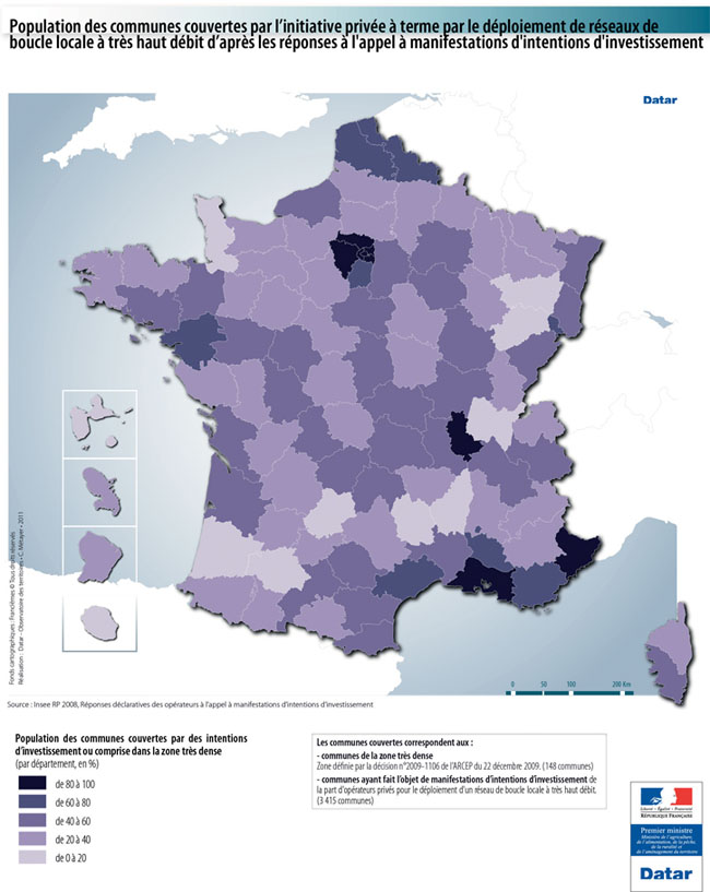 Fibre : La carte prévisionnelle de déploiement pour 2011 de Free Carte du déploiement fibre optique dans les Bouches du Rhône Fibre optique : La carte de déploiement des opérateurs dont Free d Carte du déploiement fibre optique en Gironde